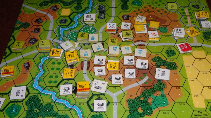 これは戦い方を緻密に考えさせるとても良いシナリオです。このデザイナーのペテシェリンさんは、Shellshock #2, AP5, AP128とダメなシナリオを連発して、ダメデザイナーなのではとの疑念を抱いていましたが、これによって晴れました。改めて調べてみたらJ142 Penny Packetsもこの方で、バランスは多少傾いているものの、そちらもなかなか良いシナリオでした。