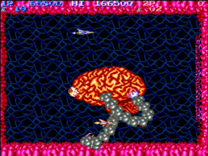 網のような細胞と塊が広がっています。破壊できるので連射で突き進みましょう。リップルレーザーだと面で破壊してくれるので楽です。