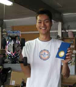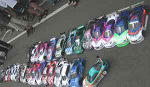 バギークラスでは、野々山 勝章選手が見事なジャンプを見せ ノートラブルで見事優勝されました。おめでとうございます。 ギャラリーのジュニア達に喝采をいただき終始笑顔でした。 そのジュニア達 スポンサーのパパママに「次はバギー欲しいヨ」 やはりジャンプは、魅力があります。 |