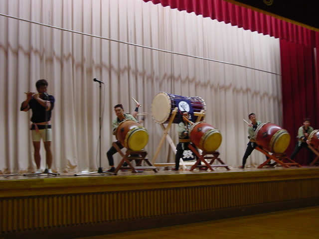 去る’02.2.10(sun) 長岡市駅前の厚生会館にて、関原民踊保存会の小学6年生、11人による演奏を行いました。当日は全国から子供連合会の会合が当地で催され、約1000人の方が来場。地元長岡周辺地域の「えちごの文化を伝える子供たち」と題して、7組の団体が参加しました。