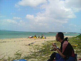 | 浜が綺麗!そこに居るだけで時間が過ぎて行きます。 | ゲストハウス宮古島&M-airのオーナーのしゅうさん。このスリングカイト柏崎で見たよ。 | 黒タイツ姿?どこかのジム所属でしょうか? |