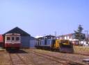 野辺地に停車中のレールバス、昭和59年1月の撮影ですが当時はまだ貨物の取り扱いが有り、側線には貨車の姿も見られました。 |