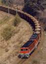 斗賀野〜吾桑間、満載の石灰石列車を牽引して勾配を登る56号機と44号機の重連。
