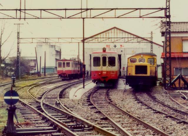 長岡に留置中の車両たち、近代的設備を誇った栃尾線ですが軽便らしい凸凹編成は栃尾線も例外ではありませんでした。