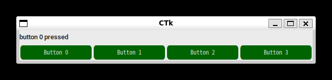 これで parent に配置するウィジェットが生成されます。parent にはメインウィンドウやほかのウィジェットのオブジェクト、widgetClass には生成するウィジェットのクラス名を指定します。返り値は生成したウィジェットのオブジェクトです。メインウィンドウもウィジェットのひとつですが CTk() で生成します。