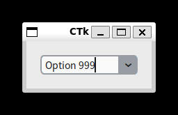 コンボボックスウィジェットはエントリー (CTkEntry) とドロップダウンリスト (CTkOptionMenu) を合わせたようなウィジェットです。ドロップダウンリストから項目を選択することができるとともに、エントリーからテキストを直接入力することもできます。