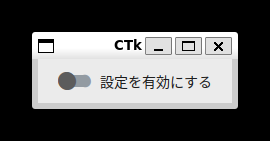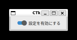 「スイッチウイジェット」は、従来の Tkinter にある Checkbutton や CustomTkinter の CTkCheckBox の役割を、トグルスイッチ (ON / OFF ボタン) のような UI で実現したものです。設定の 有効 / 無効 の切り替えなど、2 つの状態を選択させる際に使用します。