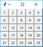 tk.Button(text = ' {} '.format(y * 5 + x + 1)).grid(column = x, row = y, sticky = 'ew')