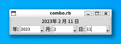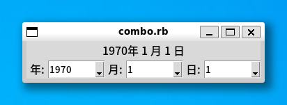 TkLabel.new(text: " 日: ").pack(side: 'left')