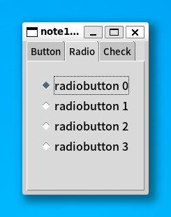 TkRadiobutton.new($f1, text: "radiobutton #{x}", value: x, variable: $v).pack