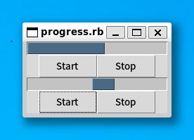TkButton.new($f2, text: 'Start', command: proc { $pb2.start(10) }).pack(side: 'left')