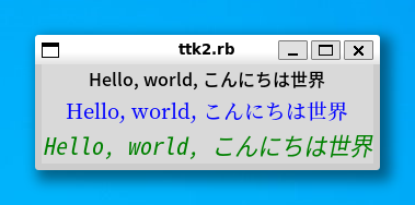 Ttk::Style.configure('.', font: ['', 12]) # Ttk Widget のフォントの大きさを 12 に変更
