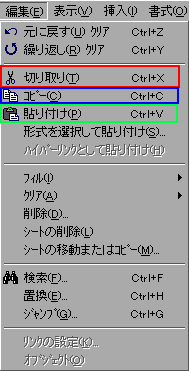 左の図にもありますがツールバーの@切り取り(はさみのマーク)とB貼り付け(ボードに紙のマーク)