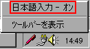 「日本語入力−オン」をクリックすることで出来るようになっています。