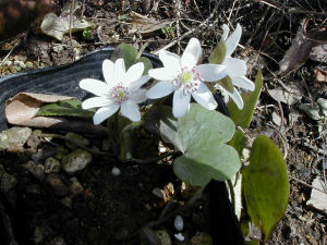 ![]() 2001/3/20 雪が解け始めたと思ったら、雪割り草が咲きました。 春一番に咲く花は愛らしい♪ |