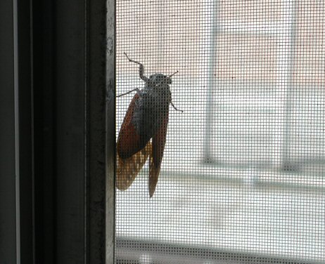 網戸にとまったセミ