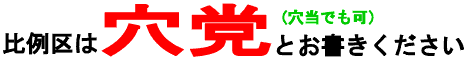 『比例区は穴党とお書きください』というバナー