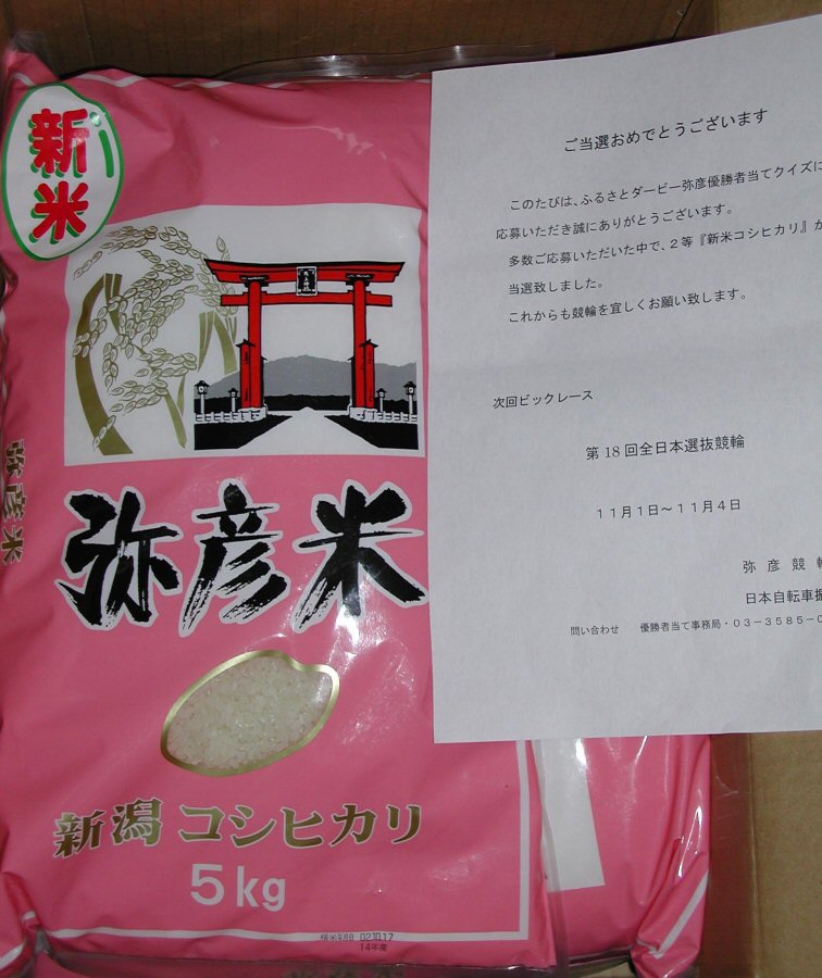 2002年ふるさとダービー弥彦の優勝者当てクイズで『米』当たりました(笑)