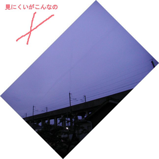 地上から伸びた2本の飛行機雲が交わっているような雲(か?)があったので、撮りました。