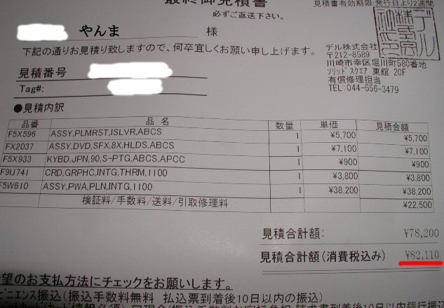 2月に108,465円で買ったのに、修理費82,110円ですか・・・