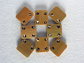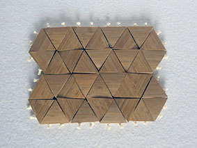 材料の在庫整理です。三角形のものは、今回は隙間を開けずに作ってみました。が、タコ糸の結び目の収まり場所がなく、残念な仕上がりになってしまいました。側面を斜めに削って底面を小さくすればいいのにと、作り終わってから気が付きました。