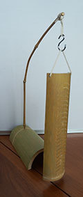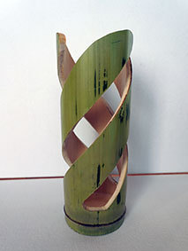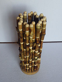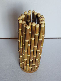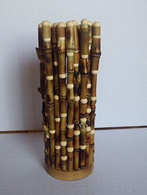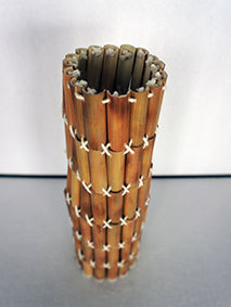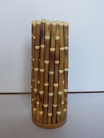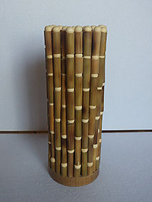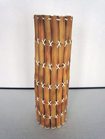 最後に残った篠竹の材料を使い切るために作ってみました。篠竹を半分に割り、タコ糸で繋いで筒状にしています。