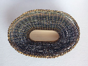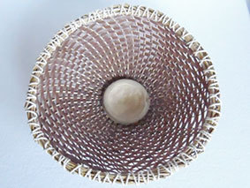 No.18、23に続くPPバンドものです。結構使い勝手がいいので買おうかなと探したら、手芸用のものがありました。色が違うだけで材質は同じです。途中からお椀状に曲げようと考えていたのですが、PPバンドだと難しくてフリスビーになってしまいました。