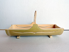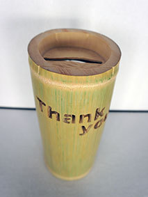 昨年暮れに伐採した若竹を何かに利用しようと、4月予定のマルシェ用に代金を入れるものを作ってみました。