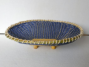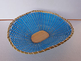 色違いのPPバンドものです。No.26が“フリスビー”になってしまいましたので、今度はしっかり湾曲をつけようと・・・。そこはまあまあでしたが、ヒゴの作りが雑だったため、縁の仕上げがうまくいかずに形がとても歪になってしまいました。PPバンドはもう一色ありますので、もう一つ作ってみたいと思います。