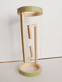 前のNo.19が、ちょっと上下の感覚が狭くて分かりづらかったことから高くしてみました。が・・・、高くした分バランスを取るのが難しい。少しずつ上下を繋いでいるタコ糸を調整して長時間格闘しましたが、結局写真のような少し傾いた状態で諦めました。