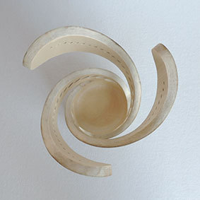 ちょっと変わった形のものをと作ろうかなということで、形の変化を見るために乾燥途中の材料を切ってみました。乾燥が進むにつれて上部が開いていくと思います。