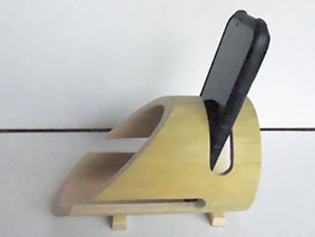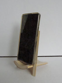 No.29を見た知人からスマホスタンドの依頼があり、残っていた材料で試作してみました。一見よさそうですが、もう少し後方に角度をつけないと安定しません。ただ、スマホを見るには角度があった方がいいので、これはこれでOKにしようかなと思います。本当は、下に充電ケーブル用の穴か切込みを入れるつもりでしたが、とりあえずこのまま“納品” してみます。