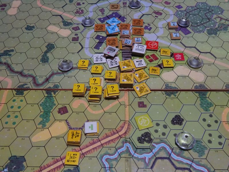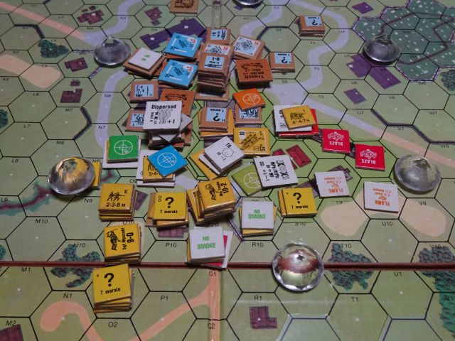 第5ターンになり、どう考えてみても戦車と砲が居並ぶ5列の防衛線を、あと3ターンで破るのは無理。日本投了です。