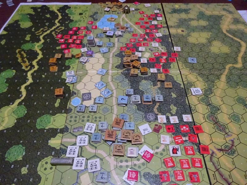 元々の状態ですら各個撃破なんてできるか怪しいのに、放火されると足掛かりも無く攻撃正面も狭くなるので、ソ連軍はこんなにたくさんいても一斉攻撃ができず、全然各個撃破になんかなりません。こんな所で放火を許しちゃだめですし、戦力バランスもひど過ぎます。全くバランスを取れないバランスルールって何のためにあるんですか?