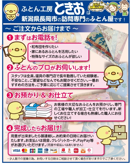 ※お伺いできる範囲は長岡市、長岡市近隣市町村です。 長岡市内でも遠距離の場合は日時をご相談させていただく場合がございます。